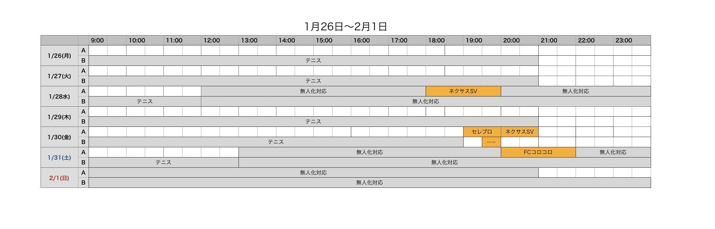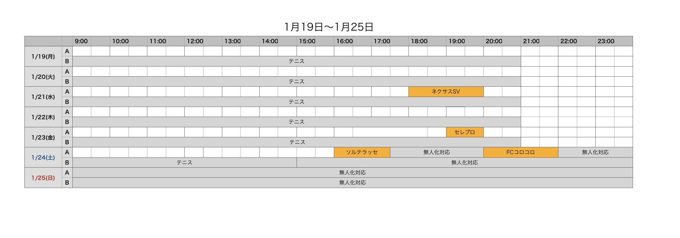 コート空き情報1/19