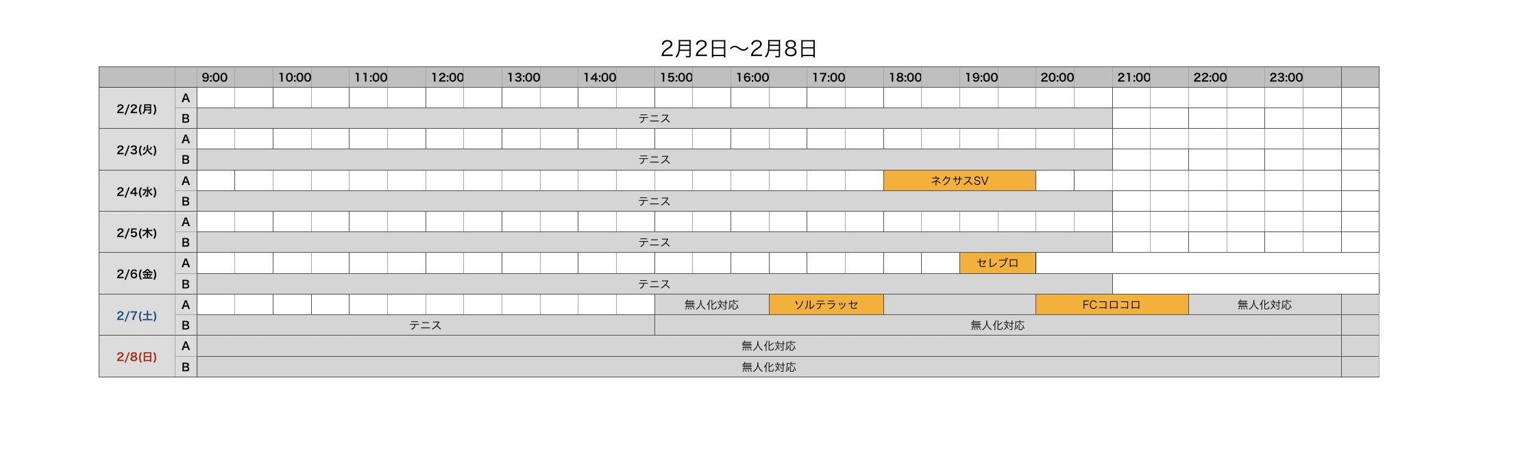 土日のコートには、まだ空きがございます。